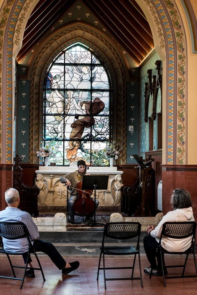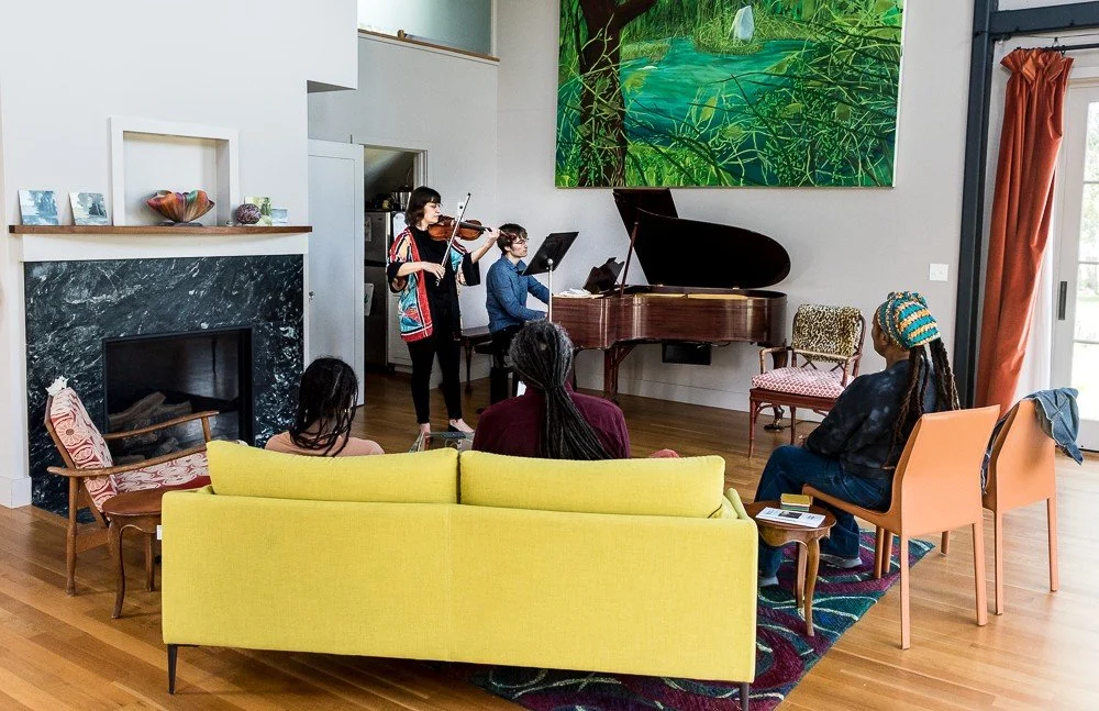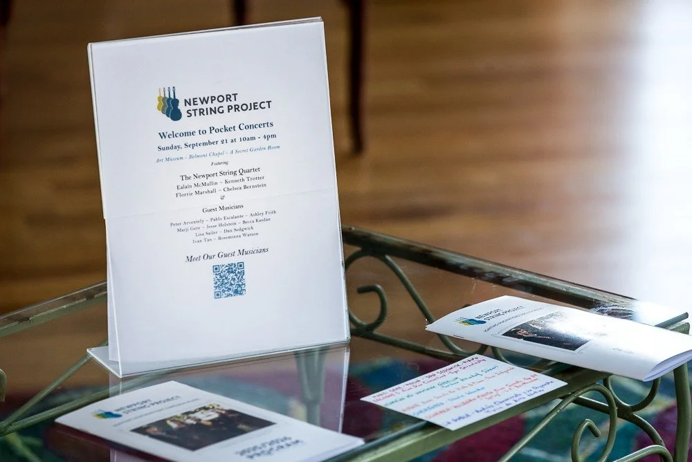 /On Saturday, September 24th, our Newport neighborhood resonated with music as melodies echoed throughout the vibrant galleries of the Newport Art Museum, the stunning Baptist Meeting House at the Newport Historical Society, the dynamic studios of Downtown Designs, and the delightful Newport Performing Arts Center. Over the course of one day, 12 musicians performed 54 micro concerts for over 70 guests, many of whom attended two and even three performances. Thank you to all of the audience members, musicians, and community partners who helped make this such a special day.