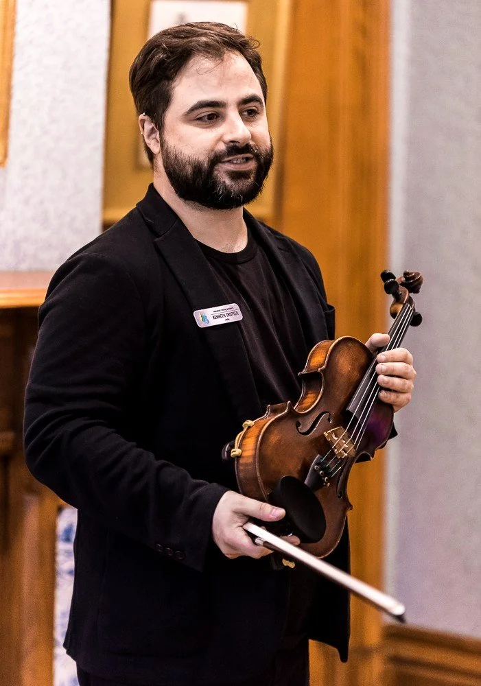 Kenneth was among the first-year participants of the Decoda Chamber Music Festival, where he was exposed to the concepts of Interactive Performance. These skills were developed further as a teaching artist at the Manchester Music Festival Young Artist’s Program, at the Carnegie Hall Audience Engagement Institute, and the St. Lawrence Emerging Quartet Program, where Kenneth and the quartet presented performances at the International Showcase in Bing Hall at Stanford University, community concerts in assisted living facilities, and for those in hospice care. This direct contact with community ignited a passion for serving more diverse audiences, and the opportunity came with an invitation to Our Joyful Noise Baltimore’s ‘Azure’ Concert series, which, in collaboration with violist Maria Lambros, presented sensory-friendly concerts for people with autism and their families, as well as traveling to and playing directly for homeless veterans facing addiction at Baltimore Station and incarcerated women at the Maryland Correctional Institute for Women.